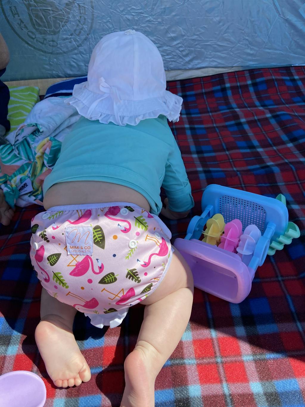 I started with just 7 Mimi and co nappies, as I was a little nervous to spend big before I was ready to commit to the reusable process. I also bought some econaps, as I got a good sale price. Well, It’s been a world of difference. To compare they don’t have a catch at the back, and poo often goes up his back. The econap inserts also have all crinkles and gone really hard, and my baby gets nasty line marks on his skin from the inserts. I’ve shown some pictures to compare. Econaps on the right, Mimi and co inserts on the left.