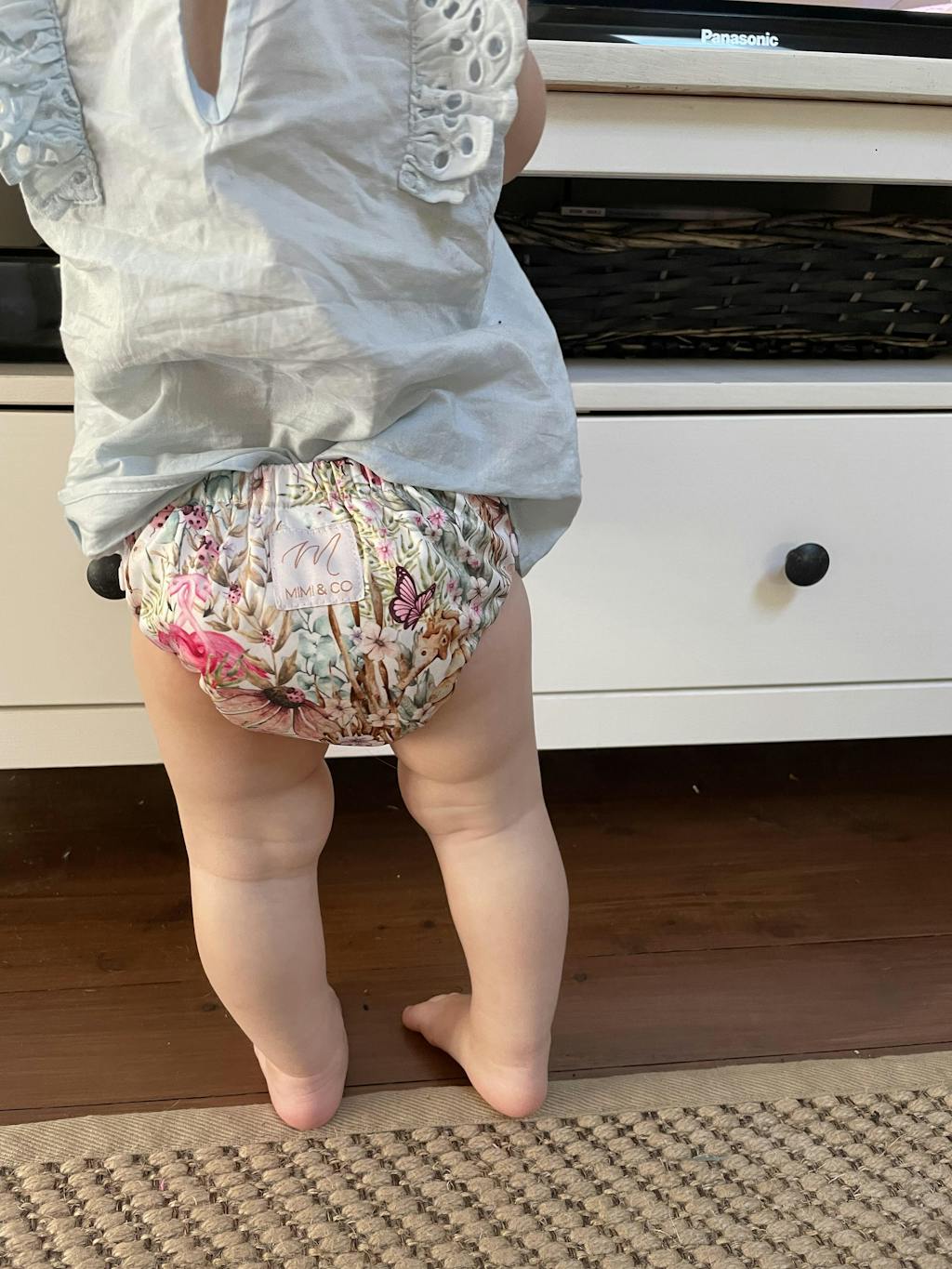 I love the feel of the pants and the thinness/thickness of them is perfect. Seemed to hold a big wee (slight wetness on the leg bands) but we aren’t at toilet training stage just yet so would be perfect for those little wee accidents (or number 2s). I don’t particularly like the fully removable side panels, they sort of sit funny and maybe wish I’d gone the bigger size. They are definitely super soft and undies like and I think they’ll be great once we are right in the middle of toilet training.